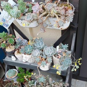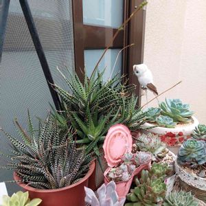 🏷️ニョロンの日 にお初参加します💕 玄関横の多肉コーナーです😃🎶 ニョロンとしてるなぁと思いバシャッ🤳しました😁 もうごちゃごちゃなのにわたし的には 癒しの空間になってます✨😌✨