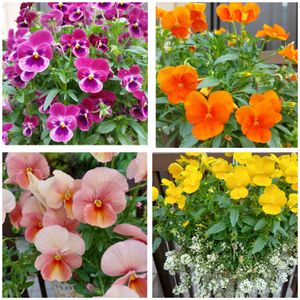 🏠️のビオラさん達です💛💜 7ヶ月以上頑張ってくれましたがもう限界かなぁ😅良い所だけ撮ったからわかりにくいけれど💦茎は太いし伸びてるし水を吸い込みにくくなってきました💦そろそろ夏の花に替えようかな😆 あと1鉢いますがその子は日陰で暫くいてもらいます🌸🌸🌸🌸🌸