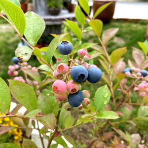昨年植えたブルーベリーの小さい苗木。 シッカリした太さの枝になるまでは結実させないほうがいいよ!って聞いたんだけど、全ての花芽を落としてしまうのは悲しくて、 少しですが花を残しておきました! 🫐一気に食べごろ? 美味しそうな色だけど、収穫はまだなのかなぁ?