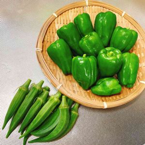 梅雨明け後のピーマンの成長すごいです! 2株植えたピーマン、どれだけ収穫できるのかな?これからが楽しみ~♬ 今日の収穫は、ピーマン10個と オクラ10本✨(^_^*)♬ 晩ごはんは、青椒肉絲と オクラの天ぷらにしよう♡