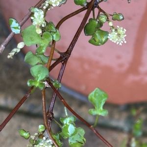 ①7月咲き菊 昨年の春3色組の苗を購入しま したがツボミの段階で茶色に変 色🥺 今年も同じようになり これは マシな状態! ②③④ 2箇所目のサオトメバナ(ヤイ トバナ.ヘクソカズラ)が咲き 始めました ⑤ ハゼラン(三時花.さんじか) お風呂の給湯器の前で見慣れぬ 葉を見つけ観察して来ました 午後3時過ぎに開花する性質が あり冬期の耐寒性は0℃以上と ある😃 折角だから育てて見ようかな!
