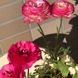 ラナンキュラス 小春日和 1月22日投稿のラナンキュラスの蕾が開いて2つずつ、 にこにこ ニコニコ niconico¨̮♡⃛♡⃛¨̮ 小春日和にココロ和む。