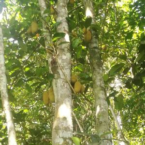 いーーーっぱい 実ってる!!! こんな感じであちこちに! ホントにパンみたいなのかなぁ?!! 実の大きさはチビッ子の頭くらい あります。何か対象物あったほーがよかったね😅