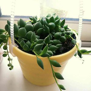 🌿ピーチネックレス🌿 そうだ!私にも好きな多肉植物あった❤️❤️❤️ ホームセンターで出会って連れて帰ってきた🥰 何度かグリーンネックレスをお迎えしたことあるのだけど、どうも上手に育ててあげられなくて💦💦ゴメンネ 庭に放置でいつのまにかだんだん粒が小さく、茶色く変色して……😭 苦い記憶1回2回ではないのです💦 なので、今回は部屋のカーテン越しの明るい窓辺を定位置に。 過保護すぎずに~🎶 ほったらかし気味で~🎶
