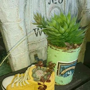 春の嵐? 風🍃がきついです! ハオルチア伸びきって 新しい鉢求めてます❗ 靴の鉢❇✨は 近所のおばちゃん 色々いらないもの 持ってきてくれた中に ありました😅 汚れおとしたら 素敵な鉢❇✨に変身💕