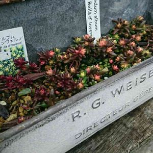 昨日は、春の嵐 今日は、冬の嵐? 只今、強風吹いてます~サムッ~ セダムナンジャラ 名札あっても覚えられず❗ 夏場は、緑セダムだったのに 可愛く変身💓 先っちょ、カラフル♥💛💚