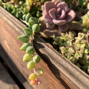 ネックレスの日という事なので..... エンジェルティアーズ錦🍀です。 多肉畑から脱走中なんですが😅 新芽の色が可愛い💕