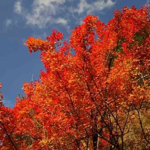 🍁愛知県 新城市 鳳来寺山 🍁 何の木かな❓ お日さまの光りを浴びて 真っ赤に紅葉した木が スッキリと晴れた 青空に映えて…🍂🍂🍂 秋のお山はいいなぁ😄