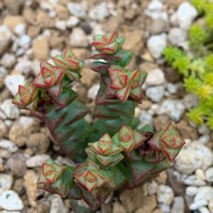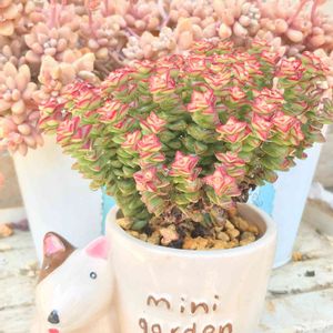 時計回りで🕒 【クラッスラ属 火祭り】 【クラッスラ属 天狗の舞?】 【セダム属 虹の玉】 【クラッスラ属 小米星】 【セダム属 オカタイトゴメ】 【エケベリア属 紅化粧?】 【カランコエ属 胡蝶の舞?】 天狗の舞?はお友達からの頂き物👺 紅化粧?は札落ちの一寸苗💄 胡蝶の舞?とオカタイトゴメは、 土手に生えてた野良多肉🌱🌱 全ての名前が分からず、 クエスチョンだらけでゴメンなさい (。>д<) Seriaの蕎麦猪口に寄せました