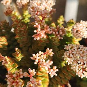 クラッスラ、小米星のつぼみがとうとう開花🌸 せっかく可愛いのに、ちっちゃくて、よく見えない👀💦