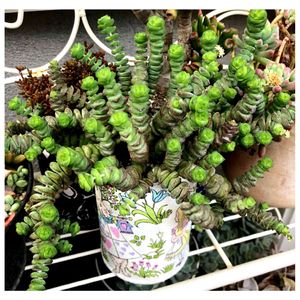 今日も朝は冷え込んでて 凍ってました😅 ビニール温室の中もマイナス2度…💦 ビニール温室は風避けだけなのか…😂 ビニール温室の中側に霜が付くので 暖かくなってくるとボトボト水滴が落ちてきてフード被ってタニパトすることもしばしば…😂😂 picは「舞乙女」だと思われる子Q罒∩艸 この缶の中には何種類かのクラッスラ入ってるんだけど 全面的に主張してるのが この子でぇす(艸*>∀<*∞)アハッ 春まで好きなだけ暴れてくれたまえ~(≧з≦)プププ