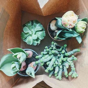 近所の花屋さんでチューリップと多肉購入✨ずっと迷ってたクラッスラの舞乙女さんをとうとうお迎えしました😊 切り花買うつもりが鉢植えチューリップになったのは皆さんの投稿に影響されて👀✨左上は名無しを衝動買い…名前わかるといいのですが🤔