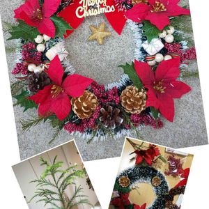 昨年作ったクリスマスリースです。 100均の材料を解体し、生材料のスギ??みたいなのをアクセントに入れて作りました✨ なーんかハデでしたね😅 残ったスギは花瓶に挿して置いたら成長したので、また使えそうです😊👌 今年は‘フレッシュリース’を作りたい~🎶と思っているのですが、まだ材料何もない😱💦💨