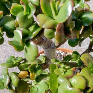 自宅に有る☺️、クラッスラの花月(金のなる木、成金草)の種類が☺️、4種類になりました😆👍️❤️。 上に有る大きいのが😅、約2年前位にDAISOでゲットした花月(金のなる木)です☺️。 これは税込で😅、¥324円でした😅。 真ん中の上が姫花月☺️、真ん中の下がホービット(又はホビット)です☺️。 下のが花月(金のなる木)錦です☺️。 この中で😅、高いのが😅、DAISOの花月(金のなる木)ですね😅。 まっ😅、素敵な花月(金のなる木)の種類の出会い☺️、感謝( T∀T)です☺️。