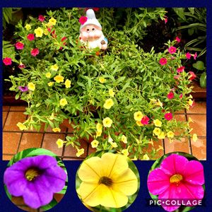 おはようございます🙋♀️ さっきまで快晴✌️ いま降り出しました☔️23度 ❣️ミリオンベル❣️ ナス科・カリブラコア属 雨ばかりで伸び伸び💦 花言葉💓 『あなたといると心がなごむ』 そんな人になりたいな😘 日当たりと風通しのよい場所で育て、花が咲く時期に肥料をたっぷりと与えることがポイント✌️ 過湿を嫌うので、土が湿っているときの水やりは厳禁です😙 肥料は薄めた液体肥料を10~15日に1回定期的に真夏を除いた10月頃まで与えます ペチュニアよりも強く、育てるのも簡単かな💓 7月にはもっと花があったのよね😅 そろそろ 切り戻しだね✂️ 最後の切り戻しは遅くとも8月中が目安です。そうすると10月頃にもう一度、花を楽しむことができるから 最後の切り戻し前のpicです👍 思い切って全部の枝を、鉢の周りに沿う形で大胆に切ります🙋♀️ さぁ〜切るよ〜✂️✂️✂️✂️✂️ 雨☔️だから 明日やわ(*≧∀≦*)