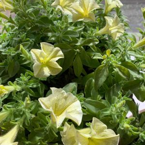 2020.1.12 カリブラコアくらいの大きさのサフィニアイエロー🍋 まだ咲いていますがもうそろそろ限界かな🌱 春になる前に切り戻しをした方が良いのか✂️ 脇芽もたくさん出ています👀