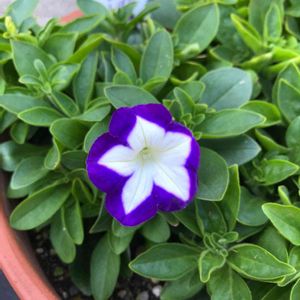 おはようございます 冬越二年生ペチュニア軍団より すぐ楽サフィニア2色丼、大盛😳 少し葉っぱの色が気になります 未だによく分からないモザイク病、育成継続します😅 東京はとうとう200人超え 雨の中、出勤です😑