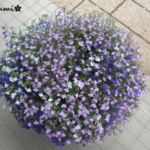 アズーロコンパクト 混色植え。 10号鉢に3株植えてあります。 ウルトラマリン、ピンク、スノー・ホワイト・スノー。 満開になりました。 この後、切り戻ししました。