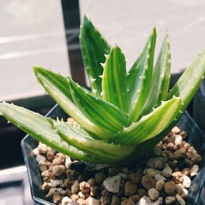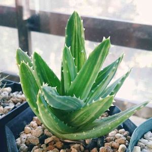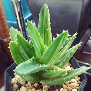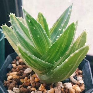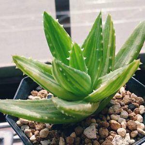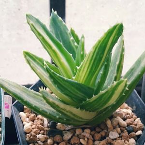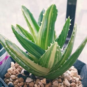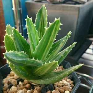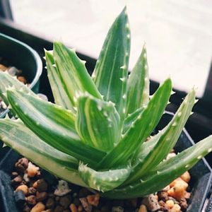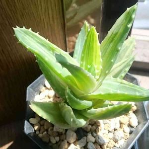 Aloe nobilis f.variegata 不夜城錦 原産地は南アフリカ ミトリフォルミス(広葉不夜城)かディスタンスと、アルボレスケンス( キダチアロエ)との種間交雑種といわれているらしい。