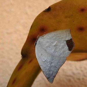 我が家の庭の住人の紹介🙇💞 月下美人の葉の裏で休む白い🦋蝶❗名前は何と言うのかな⁉️