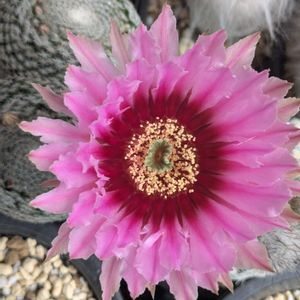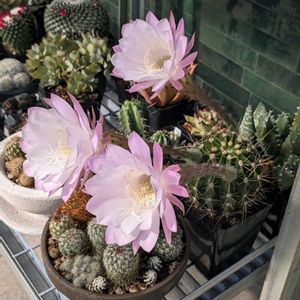 エキノプシス。去年は一つも咲かなかったけど、春に子株を全部はずしてあげたら花が咲くようになった😊 今シーズンもう3度目の開花🩷 2枚目はエキノケレウス・クラッペリと表記されていたけど和名が分からない。植え替えた途端に蕾が沢山あがってきて、しばらく楽しませてくれそうです。