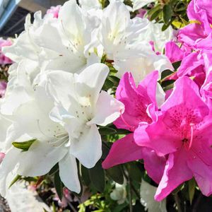 ピンクのサツキに何故か白!? 自然界ではたまにあるのかな〜?