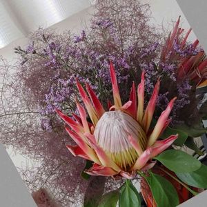 プロテアが満開になったので二本カット。 スモークツリーと豪華な花束ができました。