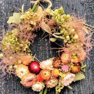 スターチスのリース。 晴れ空が待ち遠しいです☀︎