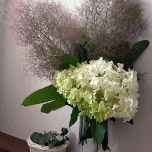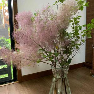 こんにちわ☺️ 知り合いから、スモークツリーを頂きました(^^♪ 庭のアナベルと花瓶に挿しました😙🎶 スモークツリーってふわふわして可愛いですね💕