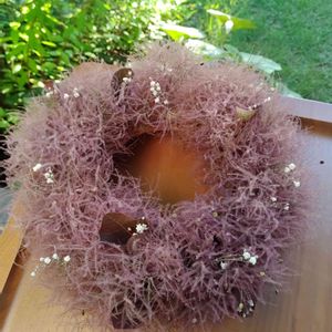 念願の我が家製のスモークツリーで、リースができました。🎉🎉 葉っぱと我が家製のかすみ草をアクセントに入れてみました。🤗🤗🤗