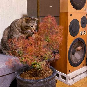 庭のスモークツリーを 部屋に似合うかと思い 持ち込んだ所 やっぱりこうなりますか(//∇//) ニャンニャン祭り参加です^o^