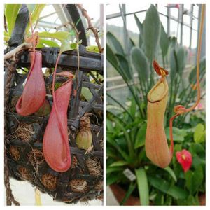 おはようございます。 温室の中の食虫植物 ウツボカズラ 中を覗いてみましたが よく見えませんでした。 良くできた不思議な形ですね。