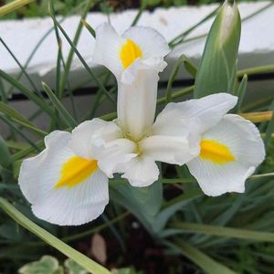 おはようス👍 新しい🌅朝がきた希望の朝じゃ🦹🏼 アイリス🌼のホワイトに🟡黄色のワンポイント(^∇^)ノ♪ 小さなプランターに植えっぱなしの放置プレイで毎年咲くやるねぇ😎じいちゃんの様に良い子なのだ🐒😘 さてお仕事じゃ⤴️👍 皆も善き日になる事を願う‼️