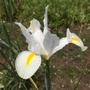 こんにちは😃 今日は曇り空、でもお日さまが出たり、雨が降ったり安定しない天候です🌦 紫に続いて白のアイリス咲きました🥰