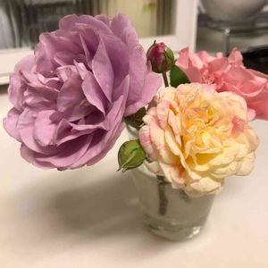 バラをロイヤルコペンハーゲンの花瓶にいけました。 可愛いですね💕。 クロードモネ と クリスチャンディオール です🌹。大輪の花は存在感がありますね。