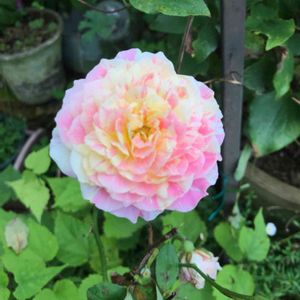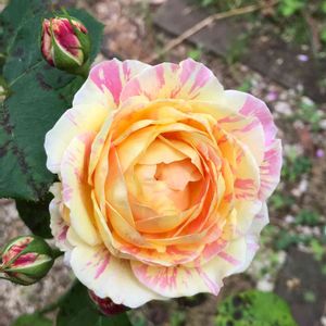 育てているバラが咲きました🌹。『クロードモネ』という名前の薔薇です🌹。 フランスのデルバール社のペインターシリーズのバラです。 花びらに模様が入っているのが、とてもキュートです。
