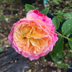 おはようございます☀ 雨上がりの庭に、🌹クロードモネが咲いていました✨ ちょっと型がいびつですが一生懸命咲いてくれました😊💕