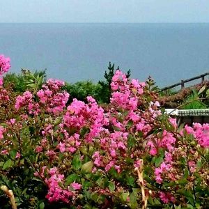 百日紅(サルスベリ)と日本海🌊
