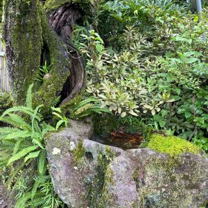我輩らは苔である 名前は申すまでもない。 ここは苔輪ピックが間近に見えるとかで、人気のスポット。 お茶の木が日傘代わりに、なかなかのジメジメ具合でござる。 ノキシノブは我輩らの居場所がお好みの様で居候して、のびのびとしている癖に肩が凝るとかで、ピップエレキバン貼りまくりであ〜る💕 ユキノシタは在宅ワークらしく、ヒゲ伸び放題。 ウッホン……(*˘︶˘*).。.:*♡咳払いして、団体生活のエチケット促し申した。 🎶皆さんのお陰様で、苔輪ピック楽しく終了いたしましたが、井戸端会議の場として苔輪ピック選考会は5pic限定を解除🔓いたしまして、ぜひとも交流の場としてお使いください💕💕💕💕💕