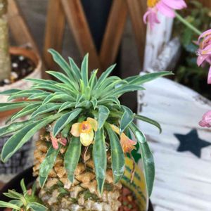パイナップルコーンに花が咲いてた💕 わき芽っていうのかな⁉️お子かな⁉️それも出てきてて。 切ったら増えるんかな⁉️ 後で調べよー😁