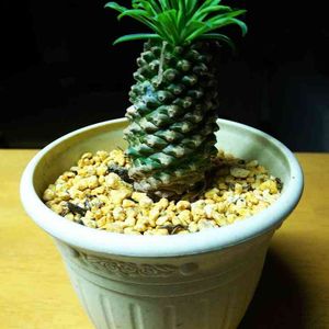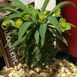 ユーフォルビア ソテツキリン❣️ 又の名をパイナップルコーン✨ 大寒波を前に家の中に避難です! 因みに真上から見ると大車輪😆