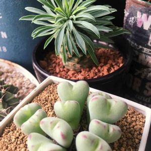 ユーフォルビアのパイナップルコーンだそうで😊 ピーん!ときて、レジ脇にあった小物にもピーン!となって添えてみました😆 うまく育ってほしいなぁ。。。