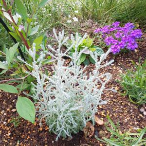 サントリナ・カマエキパリッサス'ランブルックシルバー サントリナ・ロスマリーフォリア シルバー鉢に植えたまま冬越ししてくれてます🥰 グリーンは今年買ったからどうかな⁉️