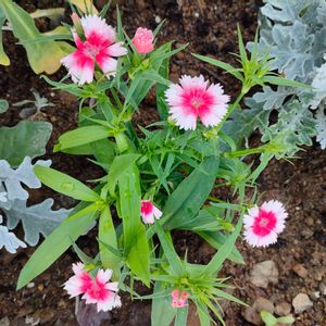 ナデシコを植えました✨🌸 ラベルにナデシコとだけ書かれていたものですが、冬中咲く👍と店主さんのお勧めもあり、いただいてきました🚙 ナデシコって秋のイメージだったので、半信半疑で😅帰ってから検索しました… 「ナデシコ」「育て方」で調べると、品種によってだいぶ違うようです🤔品種名が分からないので詰みました〜🤣 水捌け良く、日向で、冬中咲くという店主さんの言葉を信じて育ててみます。 白妙菊の隣に植えたら、まー可愛い😍💕可憐な小花