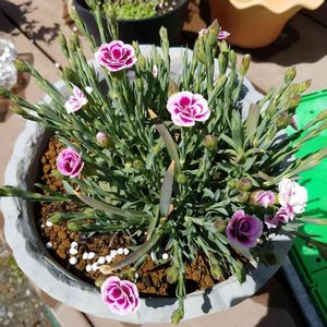 可愛らしい色の四季咲きのナデシコを植えました😄 以前からナデシコは気になってよく店で見ていましたが、今一つ決め手に欠けていて購入に至りませんでしたが、今回気に入った子を見つけたので😲✨ とても元気に咲いています😄