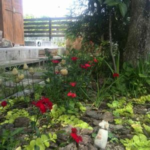 真っ赤なナデシコ、去年植えて忘れてたら、また芽を出して花咲きました! 得した気分