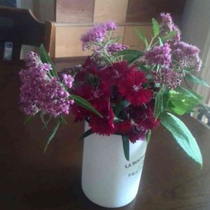 切り戻しで、シモツケとナデシコと、アジサイを飾りました~