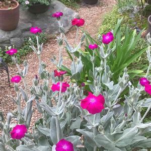 フランネルソウ ( スイセンノウ、 リクニス 等 ) 🌺 が 、季節に なって 勢い良く 咲き出しました ‼️ 今年は 零れ種から 生えて来たのを 温存し過ぎたので 、フランネルソウ は、我が家では いっぱい 咲いてくれそうです❣️