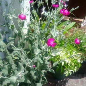 ラムズイヤーだと思って見守っていたら、花が違う😳❗️ 調べてみるとスイセンノウというもののようです。 勝手に生えてくる植物面白い😍