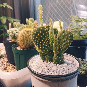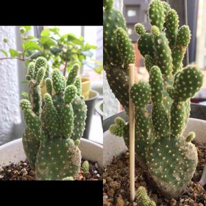 おはようございます☀ バニーカクタスの耳の下に新しい子が✨✨ イヤリングしてるみたい〜💕💕🌵 可愛いので写真撮りました🤳✨